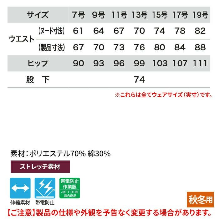 自重堂 作業服 作業着 作業ズボン 自重堂 作業服 83606 エコ製品制電ストレッチレディースパンツ 59-76 秋冬用 作業着