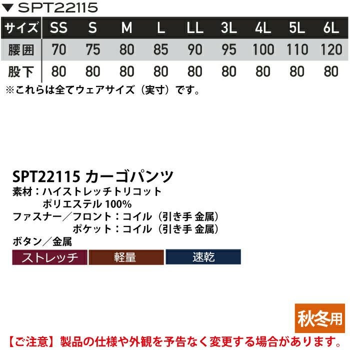 サンエス 作業服 作業着 作業ズボン サンエス 作業服 秋冬 SPT22115 カーゴパンツ 3L 作業着