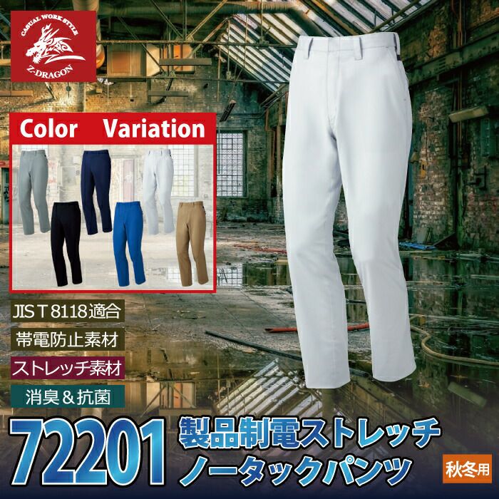自重堂 Z-DRAGON 作業服 作業着 作業ズボン 自重堂 Z-DRAGON 作業服 72201 製品制電ストレッチノータックパンツ 91-106 秋冬用 作業着