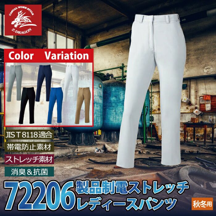 自重堂 Z-DRAGON 作業服 作業着 作業ズボン 自重堂 Z-DRAGON 作業服 72206 製品制電ストレッチレディースパンツ 81-101 秋冬用 作業着