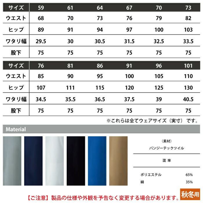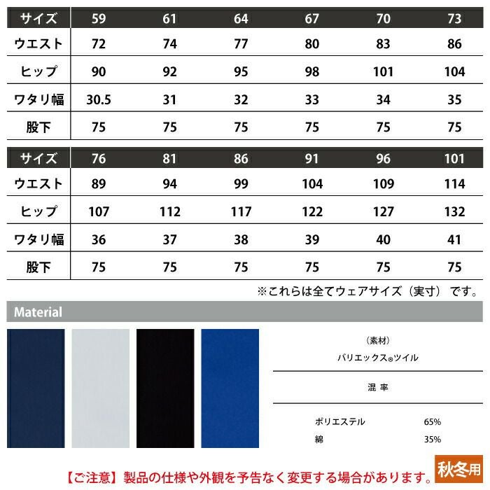 ジーベック XEBEC 作業服 作業着 作業ズボン ジーベック XEBEC 作業服 秋冬用 1742 スラックス 105-120 作業着