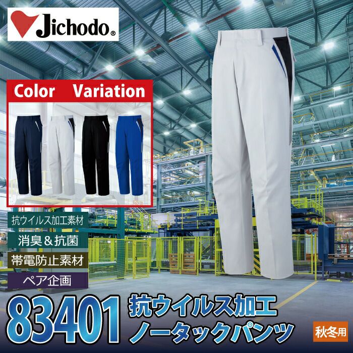 自重堂 作業服 作業着 作業ズボン 自重堂 作業服 83401 抗ウイルス加工ノータックパンツ 91-106 秋冬用 作業着