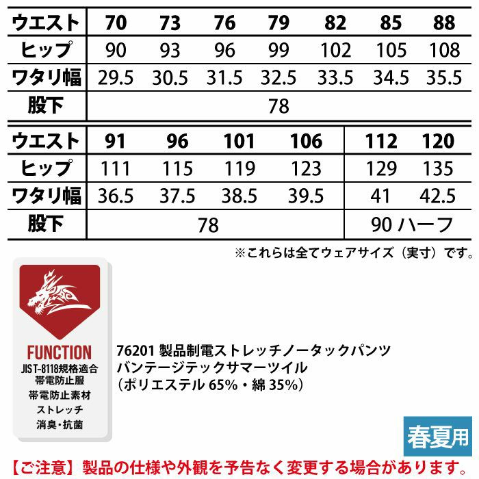 自重堂 Z-DRAGON 作業服 作業着 作業ズボン 自重堂 Z-DRAGON 作業服 76201 製品制電ストレッチノータックパンツ 70-88 春夏用 作業着