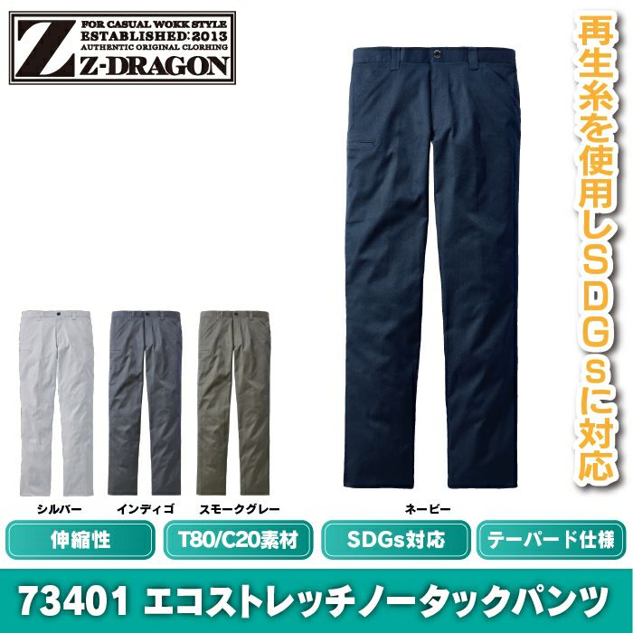 作業服 作業着 作業ズボン 自重堂 Z-DRAGON 作業服 作業ズボン 73401 エコストレッチノータックパンツ L59-88 秋冬用 作業着