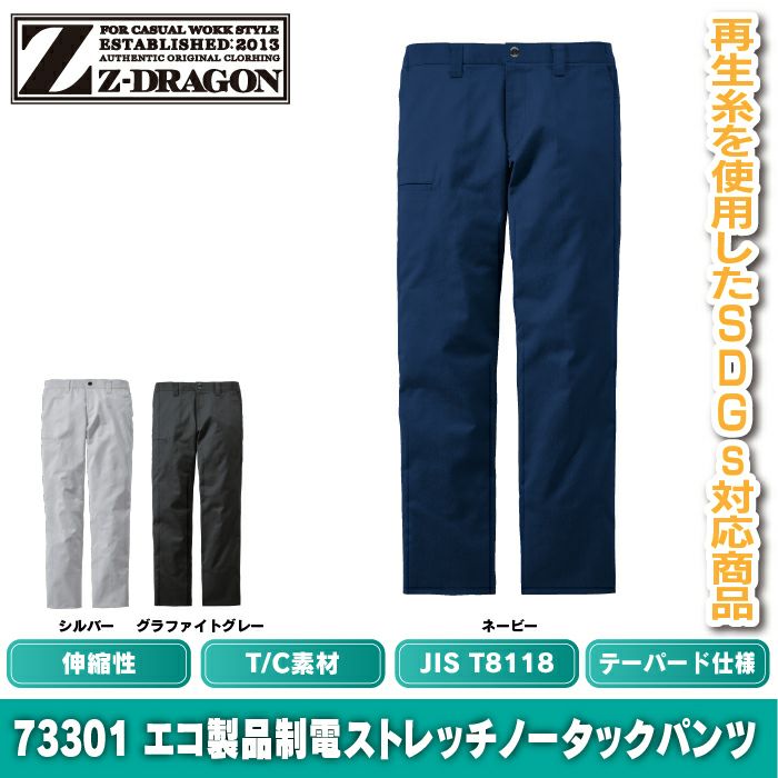作業服 作業着 作業ズボン 自重堂 Z-DRAGON 作業服 作業ズボン 73301 エコ製品制電ストレッチノータックパンツ 91-106 秋冬用 作業着