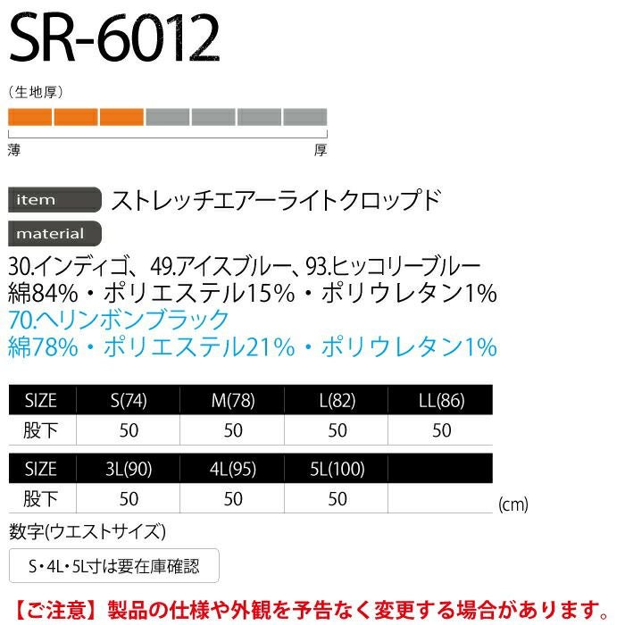 イーブンリバー 作業服 作業着 作業ズボン イーブンリバー EVENRIVER 作業服 作業ズボン SR-6012 ストレッチエアーライトクロップド S-4L 春夏秋冬 作業着 おしゃれ