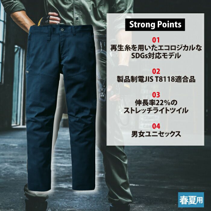 SDGs ユニセックス ストレッチ バートル BURTLE 作業着 作業ズボン 6213 パンツ 3L 作業服 おしゃれ JIS適合制電