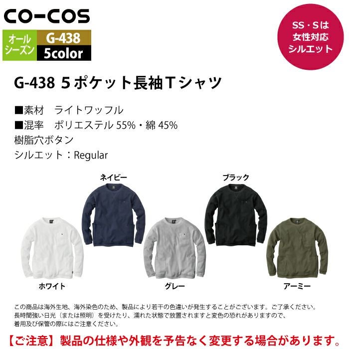 コーコス 作業服 作業着 作業ズボン コーコス 作業服 春夏用 G-438 5ポケット長袖Tシャツ SS-LL