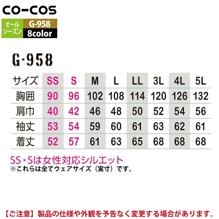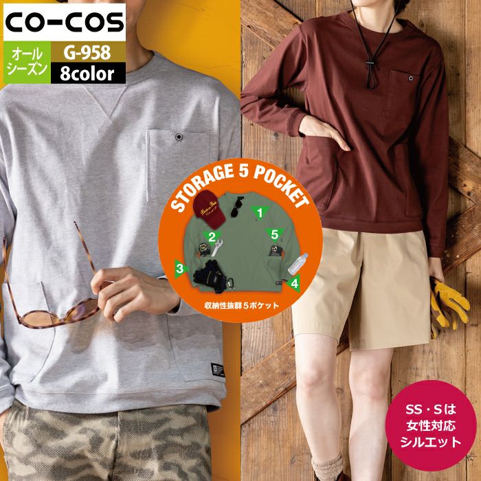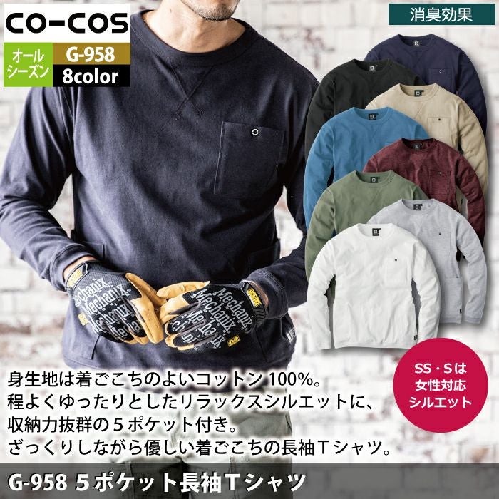 コーコス 作業服 作業着 作業ズボン コーコス 作業服 春夏用 G-958 5ポケット長袖Tシャツ SS-LL