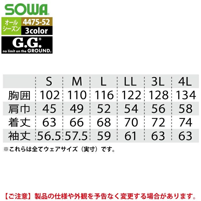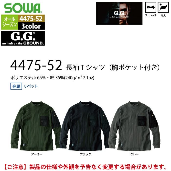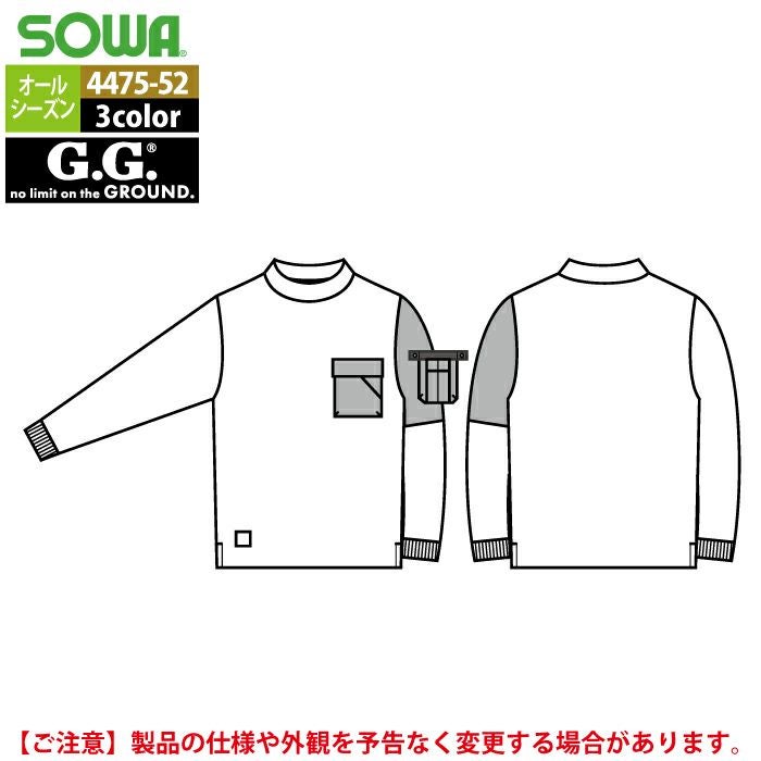 桑和 SOWA 作業服 作業着 作業ズボン 桑和 SOWA 作業服 4475-52 長袖Tシャツ(胸ポケット付き) 4L