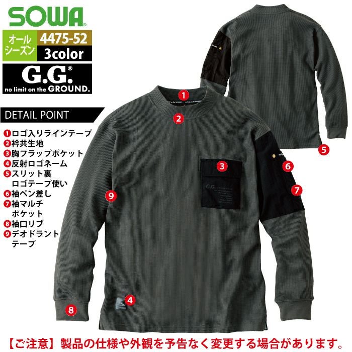 桑和 SOWA 作業服 作業着 作業ズボン 桑和 SOWA 作業服 4475-52 長袖Tシャツ(胸ポケット付き) S-3L