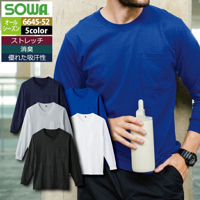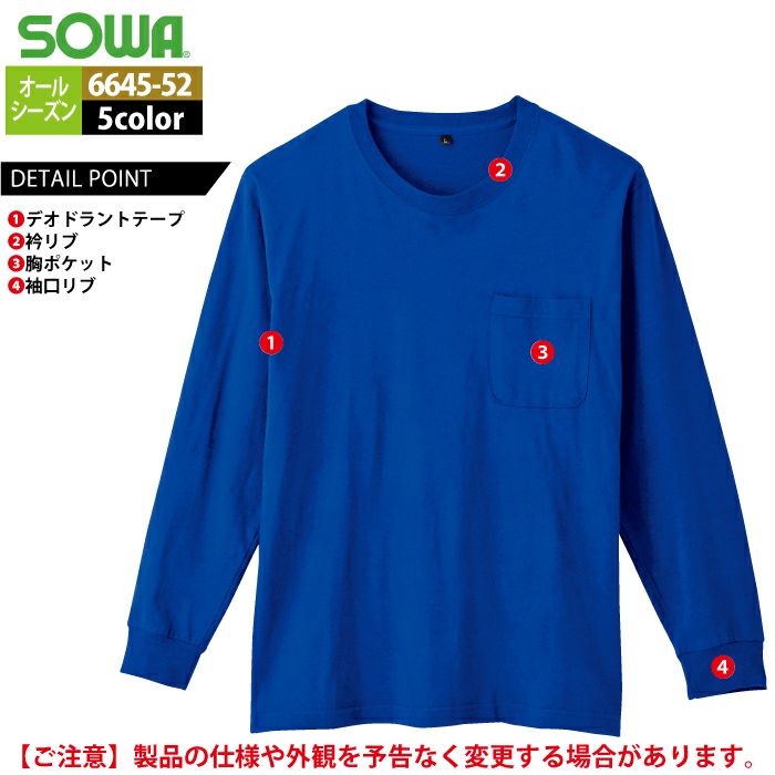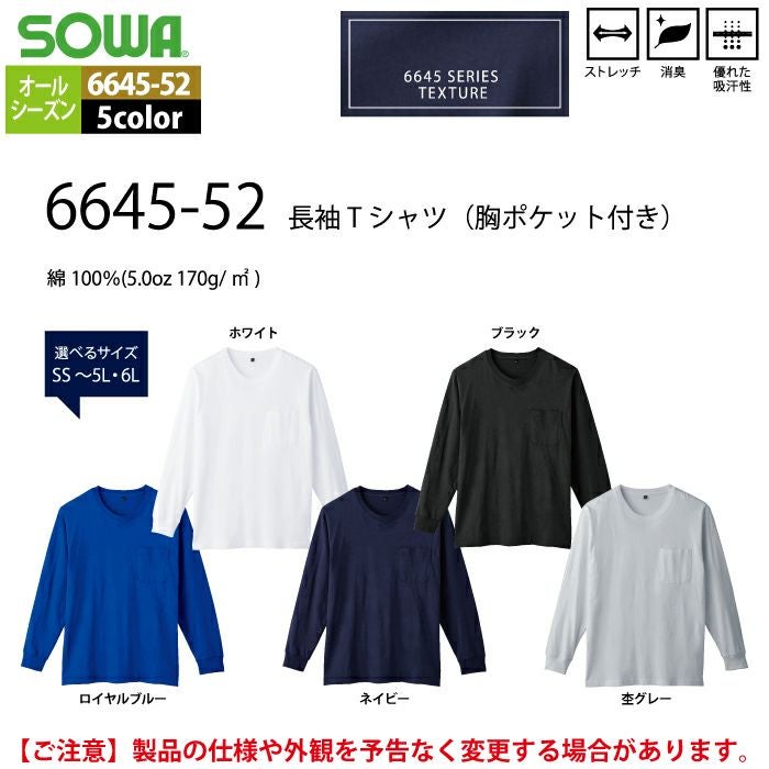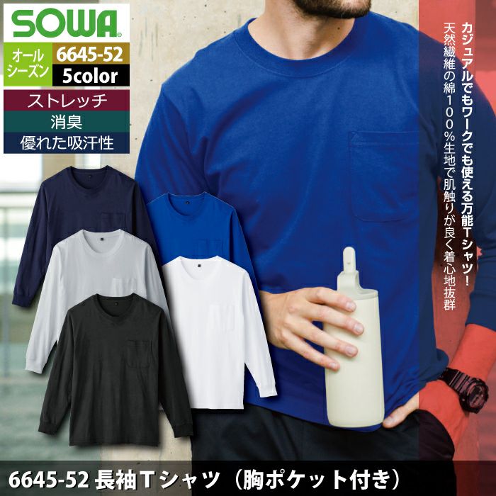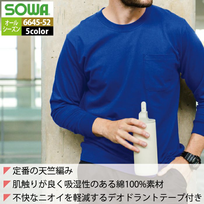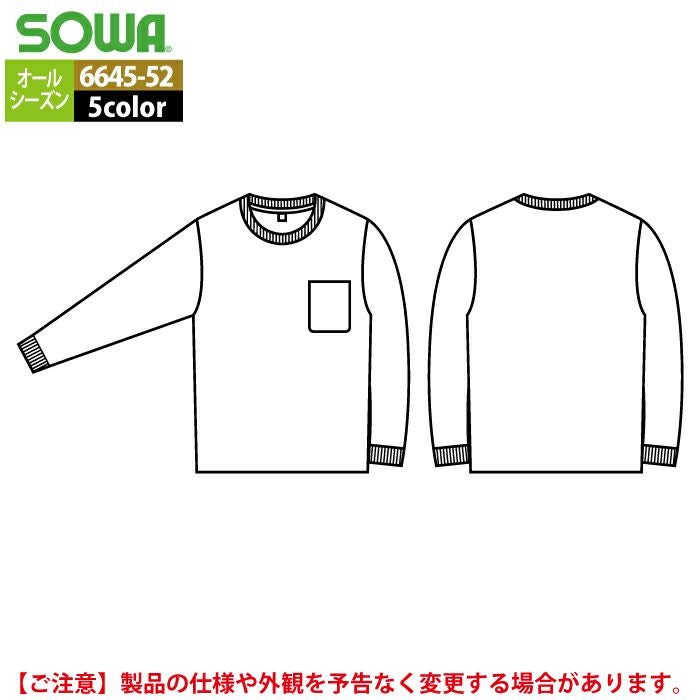 桑和 SOWA 作業服 作業着 作業ズボン 桑和 SOWA 作業服 6645-52 長袖Tシャツ(胸ポケット付き) SS-3L
