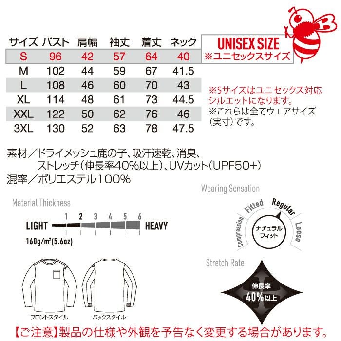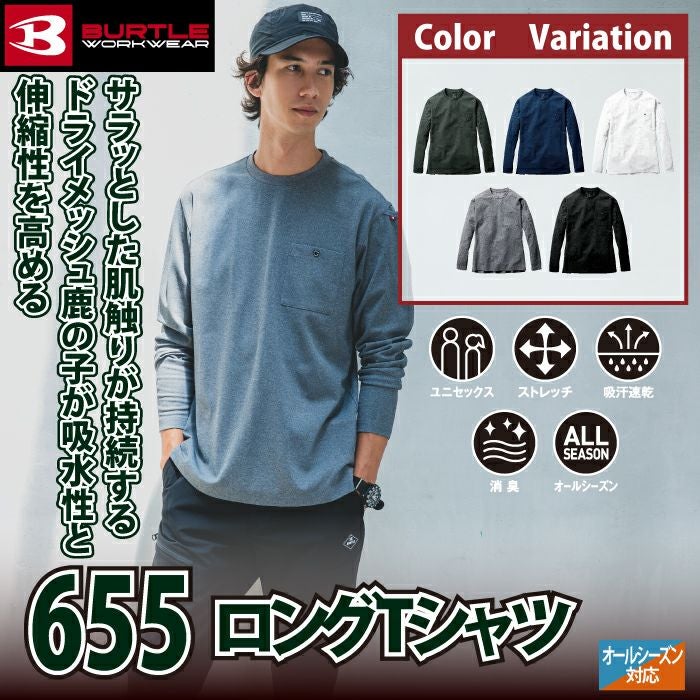 ユニセックス ストレッチ 消臭 UV バートル BURTLE 作業着 インナー 655 ロングTシャツ SS-XXL 作業服 春夏秋冬 ドライ 消臭
