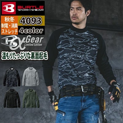 ユニセックス ストレッチ 保温 バートル BURTLE 作業着 インナー 4093 モックネックホットロングTシャツ S-XXL 作業服 秋冬 保温 裏起毛 ドライ 消臭 制電