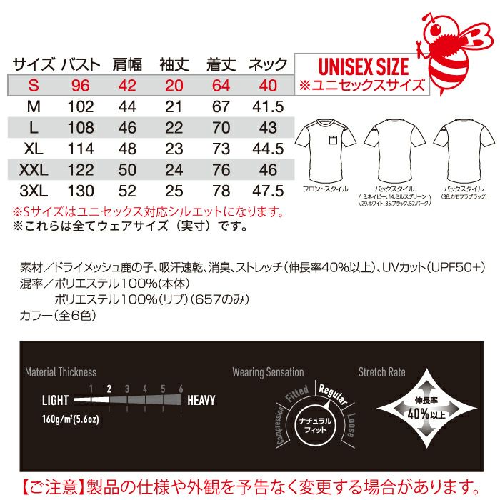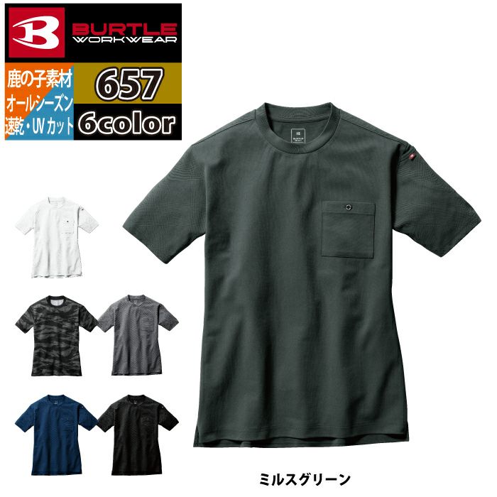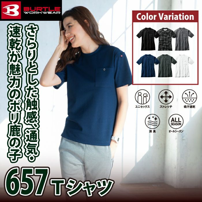 鹿の子 ユニセックス 吸汗速乾 バートル BURTLE 作業着 インナー 2024春夏新作 657 フォーマルTシャツ S-XXL ドライ デオドランド UV シャツ 春夏
