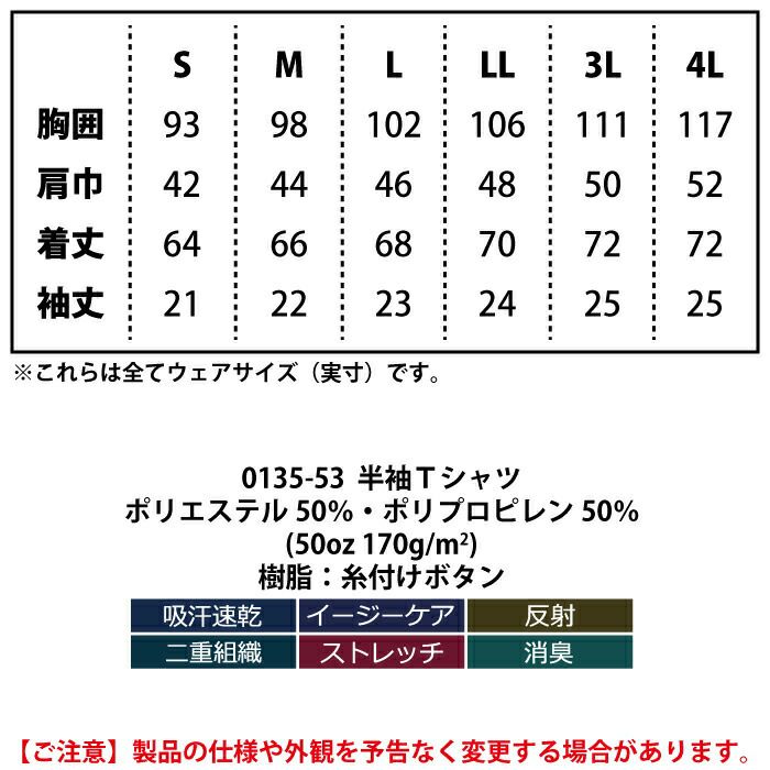 桑和 SOWA 作業服 作業着 作業ズボン 桑和 SOWA 作業服 オールシーズン 0135-53 半袖Tシャツ 4L