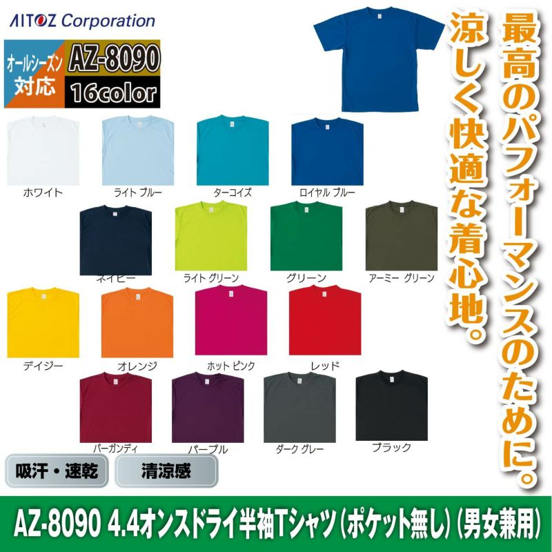 アイトス Aitoz 作業服 作業着 作業ズボン アイトス 作業服 作業着 Aitoz AZ-8090 4.4オンスドライ半袖Tシャツ(ポケット無し)(男女兼用) SS-LL
