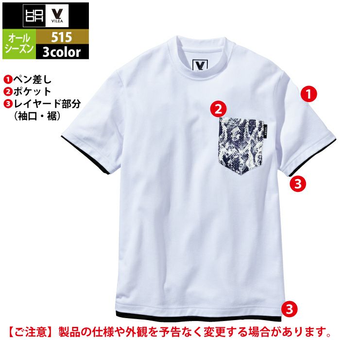 村上被服 HOOH 鳳凰 作業服 作業着 村上被服 HOOH 鳳凰 作業服 515 レイヤード風半袖Tシャツ(裏綿) M-3L