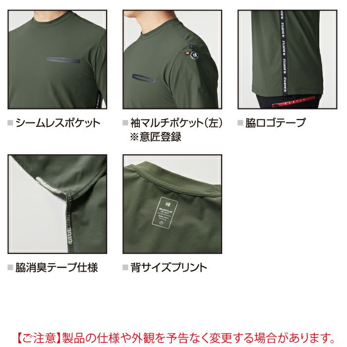 ユニセックス ストレッチ 保温 バートル BURTLE 作業着 インナー 2024秋冬新作 4103 ホットフィットTシャツ S-XXL 作業服 おしゃれ ドライ 消臭 保温