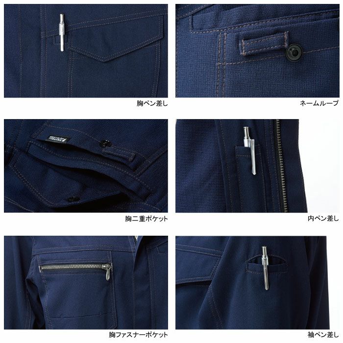 ●関連商品※963※965※967※968※969●春夏用●素材:ポリエステル90% 綿10%(裏綿)●特徴:レディースサイズ対応、50960シリーズのポロシャツとコーディネート可能、便利なスルーポケット●機能:胸ペン差し、胸二重ポケット、胸ファスナーポケット、ネームループ、内ペン差し、袖ペン差し、ひじタック、デオドラントテープ、ノーフォークメッシュ、樹脂ファスナー、樹脂ボタン(隠しドットボタン)、SS・Sはレディースサイズになります●サイズ:SS(胸囲/100、肩巾/40、着丈/60、袖丈/22)、S(胸囲/106、肩巾/42、着丈/62、袖丈/23)、M(胸囲/112、肩巾/46、着丈/63、袖丈/24)、L(胸囲/116、肩巾/48、着丈/65、袖丈/25)、LL(胸囲/120、肩巾/50、着丈/67、袖丈/25)、3L(胸囲/126、肩巾/52、着丈/70、袖丈/26)、4L(胸囲/134、肩巾/54、着丈/70、袖丈/26)、6L(胸囲/144、肩巾/57、着丈/72、袖丈/27)●カラー:ネイビー、ブラック、ブルー、シルバーグレー、ライトブラウン、モスグリーン、ダークグリーン、レッド