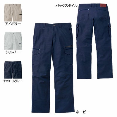 ●関連商品※56600ストレッチ長袖ジャンパー※56604ストレッチ長袖シャツ●春夏用●素材:ボディフィール麻混交織グログラン ポリエステル70% 綿20% 麻10%●ストレッチ、抗菌、消臭、帯電防止素材使用、タックボタン、消臭&抗菌テープ、カーゴポケットファスナー ロゴ入りスライダー、パンツ裾紐通し穴、革ラベル(人工皮革)、カラビナループ、メタルクリップ●サイズ:73(ウエスト/73、ヒップ/96、ワタリ幅/31.5、股下/78)、76(ウエスト/76、ヒップ/99、ワタリ幅/32、股下/78)、79(ウエスト/79、ヒップ/102、ワタリ幅/33、股下/78)、82(ウエスト/82、ヒップ/105、ワタリ幅/34、股下/78)、85(ウエスト/85、ヒップ/108、ワタリ幅/35、股下/78)、88(ウエスト/88、ヒップ/111、ワタリ幅/36、股下/78)、91(ウエスト/91、ヒップ/114、ワタリ幅/37、股下/78)、96(ウエスト/96、ヒップ/118、ワタリ幅/38.5、股下/78)、101(ウエスト/101、ヒップ/122、ワタリ幅/40、股下/78)、106(ウエスト/106、ヒップ/126、ワタリ幅/41.5、股下/78)、112(ウエスト/112、ヒップ/130、ワタリ幅/43、股下/78)●カラー:ネービー、アイボリー、シルバー、チャコールグレー