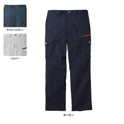 ●関連商品※56700ストレッチ長袖ジャンパー※56704ストレッチ長袖シャツ●春夏用●素材:ボディフィール高通気ドビー ポリエステル95%・綿5%●ストレッチ、清涼機能素材(高通気)、帯電防止素材使用、タック釦、デザインボタン、消臭&抗菌テープ、ロゴ入りスライダー、パンツ裾紐通し穴、カラビナループ、ワッペン●サイズ:73(ウエスト/73、ヒップ/96、ワタリ幅/31.5、股下/78)、76(ウエスト/76、ヒップ/99、ワタリ幅/32、股下/78)、79(ウエスト/79、ヒップ/102、ワタリ幅/33、股下/78)、82(ウエスト/82、ヒップ/105、ワタリ幅/34、股下/78)、85(ウエスト/85、ヒップ/108、ワタリ幅/35、股下/78)、88(ウエスト/88、ヒップ/111、ワタリ幅/36、股下/78)、91(ウエスト/91、ヒップ/114、ワタリ幅/37、股下/78)、96(ウエスト/96、ヒップ/118、ワタリ幅/38.5、股下/78)、101(ウエスト/101、ヒップ/122、ワタリ幅/40、股下/78)、106(ウエスト/106、ヒップ/126、ワタリ幅/41.5、股下/78)、112(ウエスト/112、ヒップ/130、ワタリ幅/43、股下/78)●カラー:ネービー、シルバー、チャコールグレー