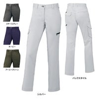 ●関連商品※75900ストレッチ長袖ジャンパー※75901ストレッチノータックパンツ※75902ストレッチノータックカーゴパンツ※75904ストレッチ長袖シャツ※75906ストレッチレディースパンツ(裏付)※75910ストレッチ半袖ジャンパー●春夏用●素材:バンジーテックサマーツイル ポリエステル65%・綿35%●消臭、抗菌、ストレッチ、帯電防止素材使用、消臭&抗菌テープ、ワンポイント(後ポケット)、マルチポケット、カラビナループ●サイズ:59(ウエスト/72、ヒップ/90、ワタリ幅/29.5、股下/75)、61(ウエスト/74、ヒップ/92、ワタリ幅/30、股下/75)、64(ウエスト/77、ヒップ/95、ワタリ幅/31、股下/75)、67(ウエスト/80、ヒップ/98、ワタリ幅/32、股下/75)、70(ウエスト/83、ヒップ/101、ワタリ幅/33、股下/75)、73(ウエスト/86、ヒップ/104、ワタリ幅/34、股下/75)、76(ウエスト/89、ヒップ/107、ワタリ幅/35、股下/75)、81(ウエスト/94、ヒップ/112、ワタリ幅/36、股下/75)、86(ウエスト/99、ヒップ/117、ワタリ幅/37、股下/75)、91(ウエスト/104、ヒップ/122、ワタリ幅/38.5、股下/75)、96(ウエスト/109、ヒップ/127、ワタリ幅/40、股下/75)、101(ウエスト/114、ヒップ/132、ワタリ幅/41.5、股下/75)●カラー:シルバー、ネービー、アーミーグリーン、スチールグレー