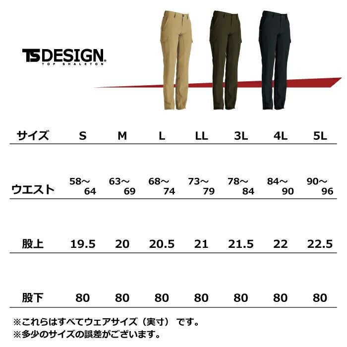 ●関連商品※84614ストレッチタフメンズカーゴパンツ※84612ストレッチタフメンズパンツ※846141ストレッチタフレディースカーゴパンツ※846121ストレッチタフレディースパンツ●オールシーズン用●素材:ストレッチタフ ポリエステル100%●超軽量、2WAYストレッチ、ウエストストレッチ、高強度(タフ)、形態安定性、撥水加工、防汚機能、静電気除去テープ仕様、生地厚/中厚手、シルエット/スタイリッシュ、フィット/レギュラー(適度なフィット感)、股上/やや浅め、カーゴポケット●サイズ:S(ウエスト/58~64、股上/19.5、股下/80)、M(ウエスト/63~69、股上/20、股下/80)、L(ウエスト/68~74、股上/20.5、股下/80)、LL(ウエスト/73~79、股上/21、股下/80)、3L(ウエスト/78~84、股上/21.5、股下/80)、4L(ウエスト/84~90、股上/22、股下/80)、5L(ウエスト/90~96、股上/22.5、股下/80)●カラー:ベージュ、カーキグリーン、ブラック