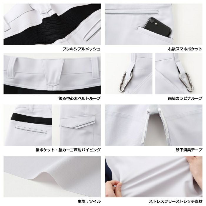 ●関連商品※WA21931長袖ブルゾン※WA21934ノータックパンツ●オールシーズン用●素材:ツイル、ファスナー/[フロント]金属、国内生地ポリエステル100%●帯電防止素材、ストレッチ、フレキシブルメッシュ、右後スマホポケット、後ろ中心太ベルトループ、反射パイピング、後ポケット・脇カーゴ、両脇カラビナループ、消臭テープ(股)●サイズ:70(ウエスト/70、股下/80)、73(ウエスト/73、股下/80)、76(ウエスト/76、股下/80)、79(ウエスト/79、股下/80)、82(ウエスト/82、股下/80)、85(ウエスト/85、股下/80)、88(ウエスト/88、股下/80)、91(ウエスト/91、股下/80)、95(ウエスト/95、股下/80)、100(ウエスト/100、股下/78)、105(ウエスト/105、股下/78)、110(ウエスト/110、股下/78)、115(ウエスト/115、股下/78)、120(ウエスト/120、股下/78)●カラー:ネイビー、ブルー、シルバー