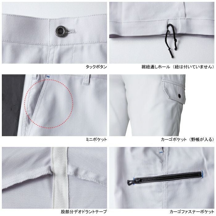●関連商品※3012-00長袖ブルゾン※3012-09スラックス●オールシーズン用●素材:ポリエステル80% 綿20%金属ファスナー、金属ボタン●制電性素材、ストレッチ、消臭、レディース対応、野帳ポケット、タックボタン、ミニポケット、デオドラントテープ、裾紐通しホール(紐は付いていません)、カーゴポケット(野帳が入る)、カーゴファスナーポケット、レディースサイズのみ透け防止裏地付●サイズ:70(ウエスト/70、股下/82、わたり巾/32)、73(ウエスト/73、股下/82、わたり巾/32.75)、76(ウエスト/76、股下/82、わたり巾/33.5)、79(ウエスト/79、股下/82、わたり巾/34.25)、82(ウエスト/82、股下/82、わたり巾/35)、85(ウエスト/85、股下/82、わたり巾/35.75)、88(ウエスト/88、股下/82、わたり巾/36.5)、91(ウエスト/91、股下/82、わたり巾/37.25)、95(ウエスト/95、股下/82、わたり巾/38.25)、100(ウエスト/100、股下/82、わたり巾/39.5)、105(ウエスト/105、股下/80、わたり巾/41)、110(ウエスト/110、股下/80、わたり巾/42.5)、120(ウエスト/120、股下/80、わたり巾/45)、130(ウエスト/130、股下/80、わたり巾/47.5)、GS(適応ウエスト/60、実寸ウエスト/70、股下/78、わたり巾/30)、GM(適応ウエスト/64、実寸ウエスト/74、股下/78、わたり巾/31)、GL(適応ウエスト/68、実寸ウエスト/78、股下/78、わたり巾/32)、GLL(適応ウエスト/73、実寸ウエスト/83、股下/78、わたり巾/34)、G3L(適応ウエスト/78、実寸ウエスト/88、股下/78、わたり巾/37)●カラー:ネイビー、ブラック、シルバーグレー、チャコールグレー