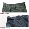 インパクト抜群の迷彩柄プリントを施したストレッチパンツが登場。綿の吸湿吸汗性、高いストレッチ性、ダブルファスナーの収納力と機能面も充実。