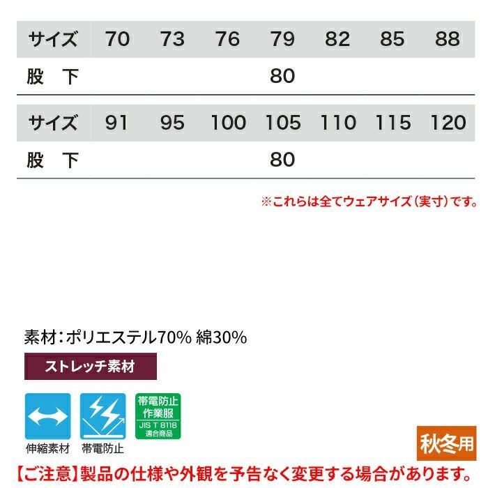 ◇定番T/Cワークウェアにストレッチ機能とJIS制電を付与し様々な職種で安心して着用してもらえるシリーズです。
