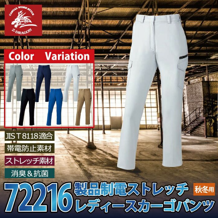 自重堂 Z-DRAGON 作業服 作業着 作業ズボン 自重堂 Z-DRAGON 作業服 72216 製品制電ストレッチレディースカーゴパンツ 59-76 秋冬用 作業着