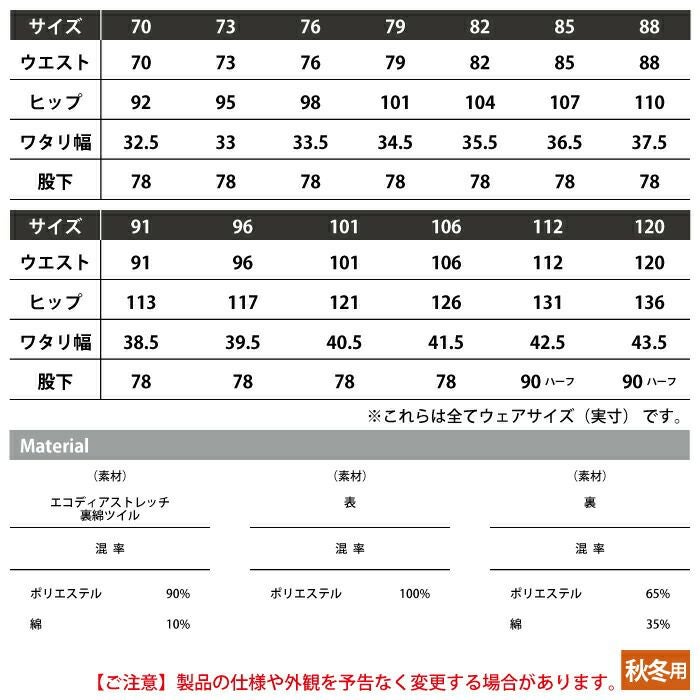 自重堂 作業服 作業着 作業ズボン 自重堂 作業服 83602 エコ製品制電ストレッチノータックカーゴパンツ 70-88 秋冬用 作業着