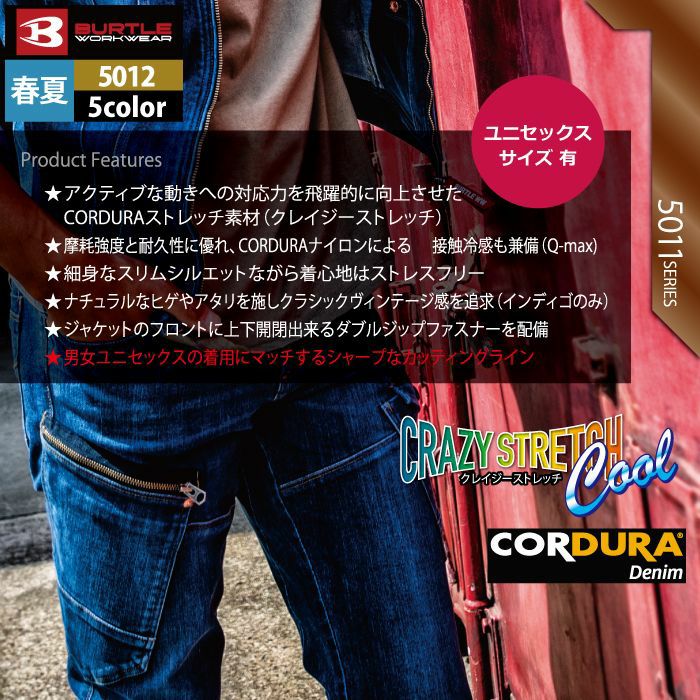COOL&クレイジーストレッチ ひんやりで夏にピッタリ バートル BURTLE 作業着 作業ズボン 5012 カーゴパンツ SS-3L 春夏 ストレッチ 作業服 おしゃれ 接触冷感 デニム 5011対応