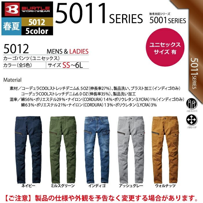 バートル BURTLE 作業着 作業ズボン 5012 カーゴパンツ SS-3L 春夏 ストレッチ 作業服 おしゃれ 接触冷感 デニム 5011対応