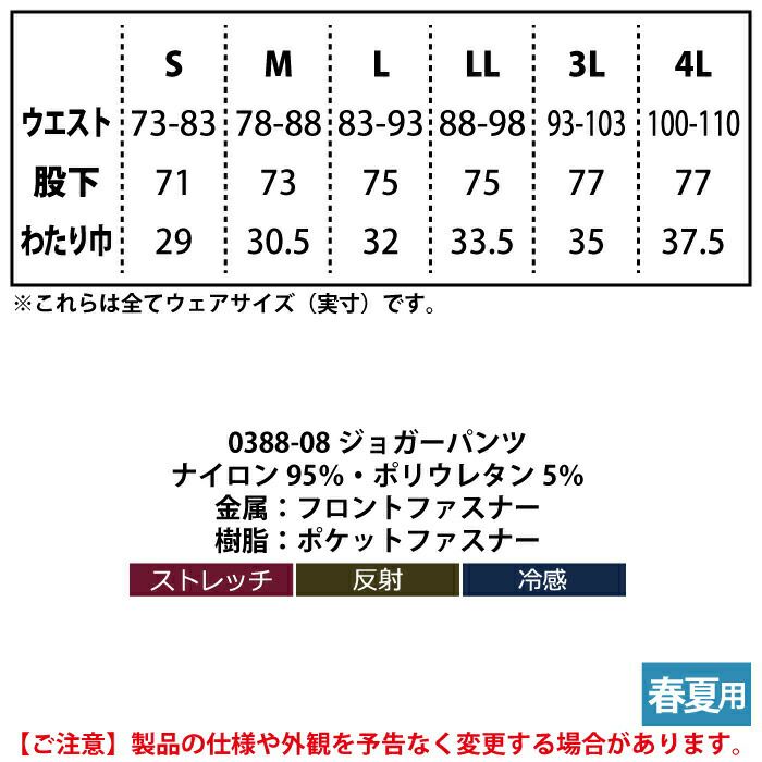 桑和 SOWA 作業服 春夏用 0388-08 ジョガーパンツ S-LL