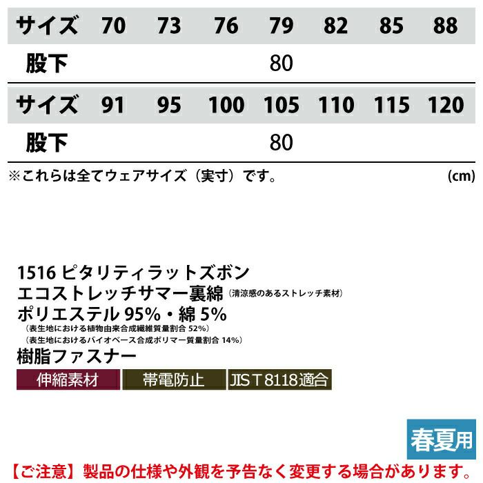 ジーベック XEBEC 作業服 作業着 作業ズボン ジーベック XEBEC 作業服 春夏用 1516 ピタリティラットズボン 105-120 作業着