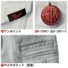 ◇機能:タックボタン(フロント)・プリント(コインポケット)・プリント(右カーゴポケット)・パンツ裾紐通し穴・マルチポケット(前身)・タックボタン(左カーゴポケット)・プリント(左ピスポケット)・ワンポイント・革ラベル(合成皮革)・カラビナループ・マルチポケット(後身)