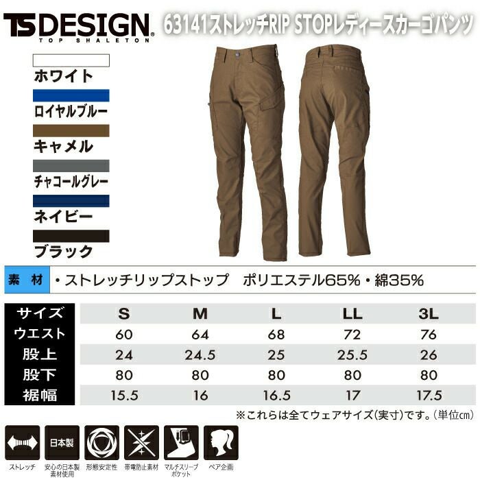 藤和 TSDESIGN 作業服 作業着 作業ズボン 藤和 TSDESIGN 作業服 オールシーズン 63141 ストレッチRIPSTOPレディースカーゴパンツ 3L