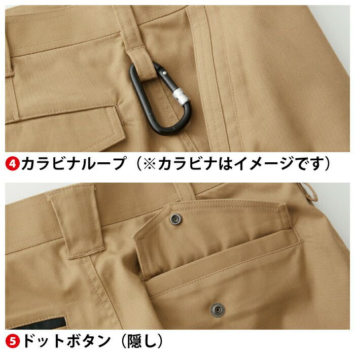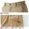 ◇機能:制電性素材・ストレッチ・消臭・イージーケア・レディース対応・タックボタン・カラビナループ・ドットボタン(隠し)・スルーポケット・ファスナーポケット・ペン差し・カーゴポケット