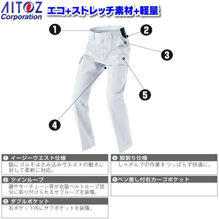 アイトス 作業服 作業着 Aitoz 秋冬用 AZ-1921 カーゴパンツ (ノータック)(男女兼用) 3S-LL