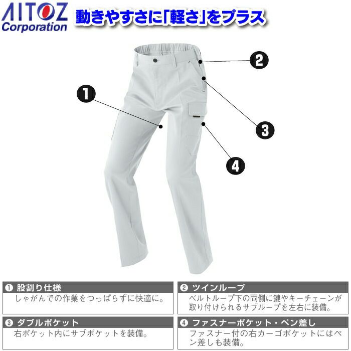 アイトス 作業服 作業着 Aitoz 秋冬用 AZ-3321 カーゴパンツ (ノータック)(男女兼用) 3L-4L