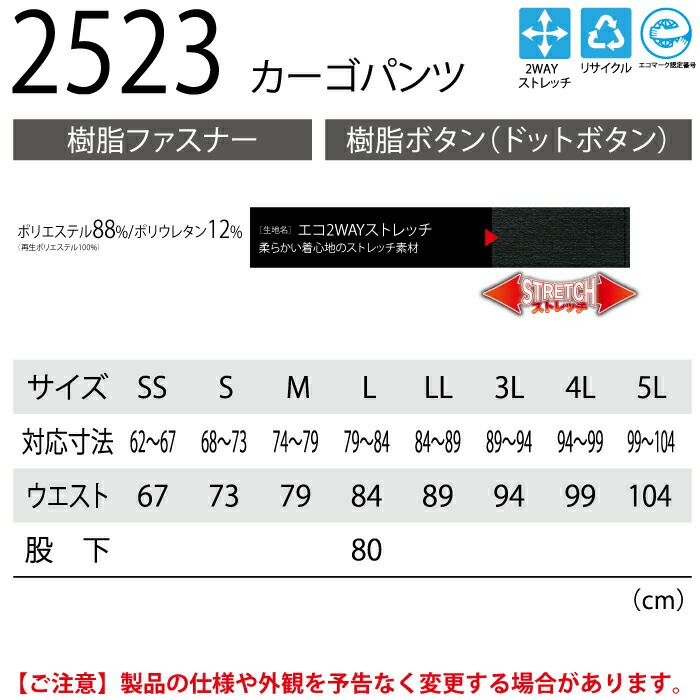 ジーベック XEBEC 作業服 秋冬用 2523 カーゴパンツ 4L-5L 作業着