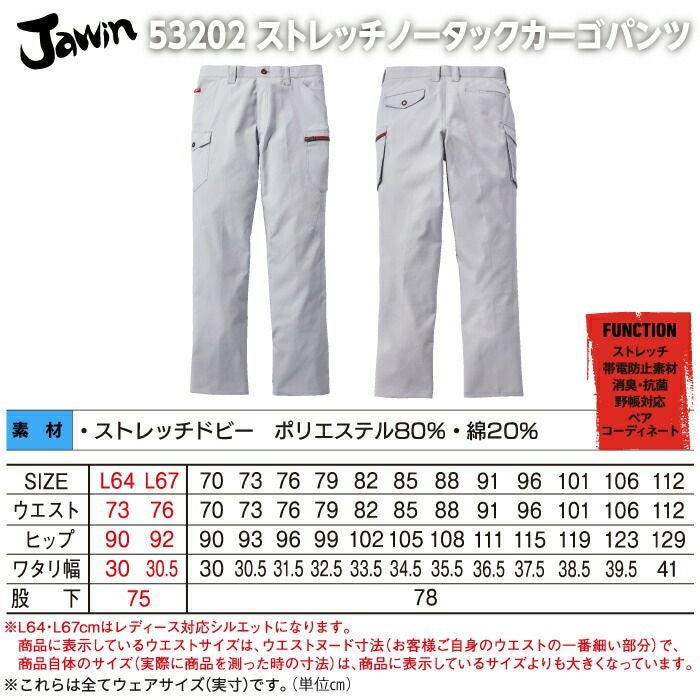自重堂 JAWIN ジャウィン 作業服 作業着 自重堂 JAWIN ジャウィン 作業服 53202 ストレッチノータックカーゴパンツ 91-112 秋冬用 作業着