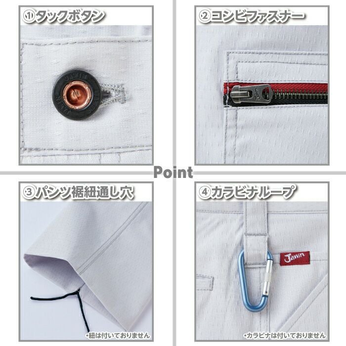 ◇機能:ワンポイント・デザインボタン・パンツ裾紐通し穴・タックボタン・コンビファスナー・消臭抗菌テープ・カラビナループ