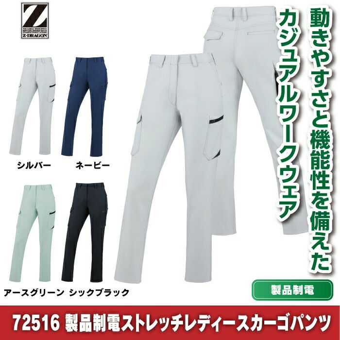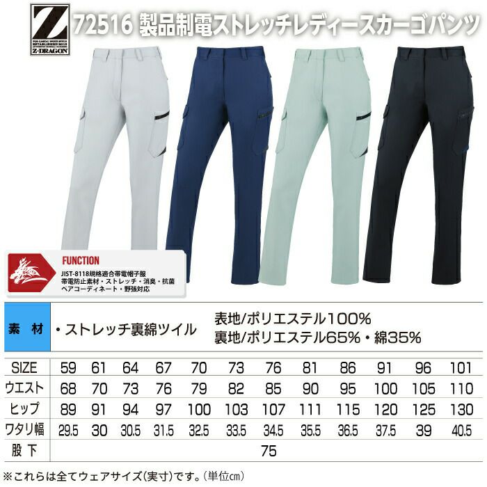 自重堂 Z-DRAGON 作業服 作業着 作業ズボン 自重堂 Z-DRAGON 作業服 72516 製品制電ストレッチレディースカーゴパンツ 59-76 秋冬用 作業着