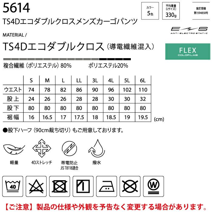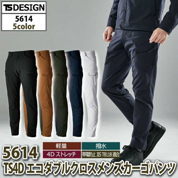 藤和 TSDESIGN 作業服 オールシーズン 5614 TS4Dエコダブルクロスメンズカーゴパンツ S-LL