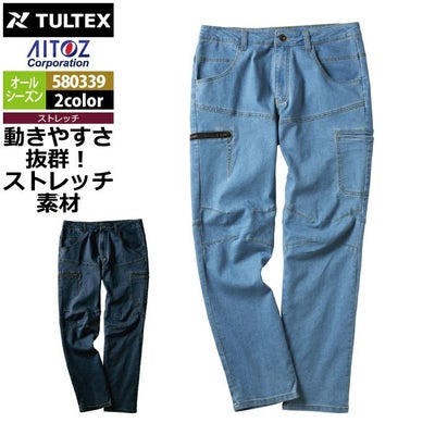 アイトス 作業服 作業着 Aitoz 580339 ストレッチデニムカーゴパンツ 76-100