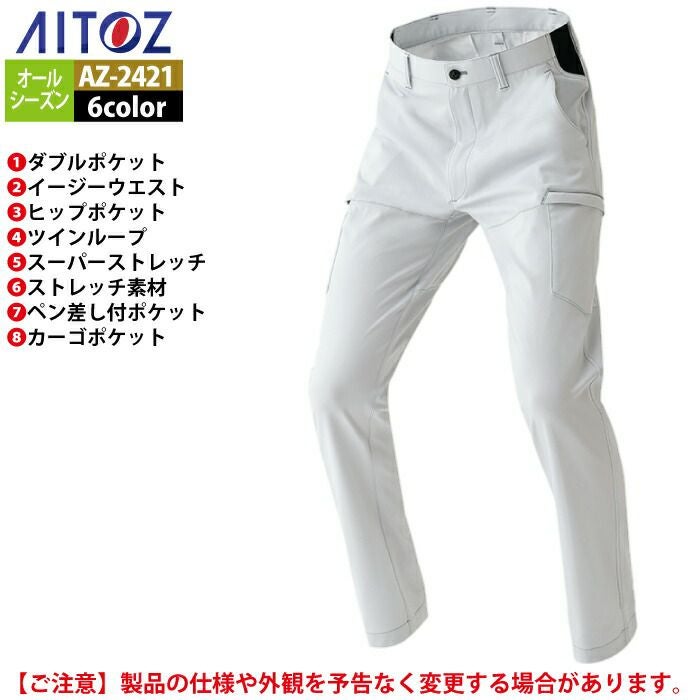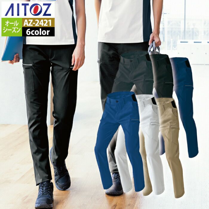 アイトス Aitoz 作業服 作業着 作業ズボン アイトス 作業服 作業着 Aitoz AZ-2421 カーゴパンツ(ノータック)(男女兼用) 6L